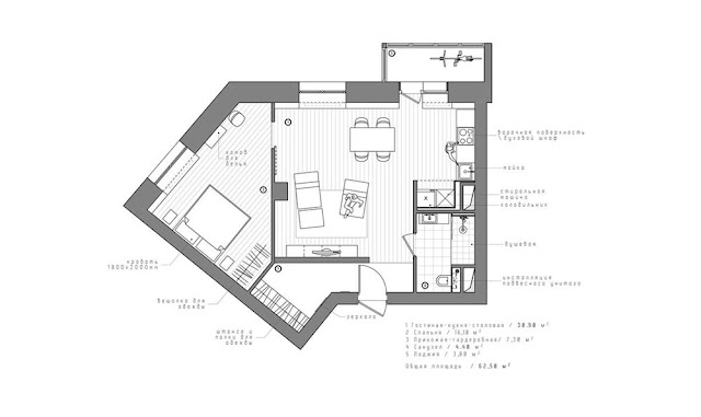 Ta aranżacja mieszkania położonego w Petersburgu  może być inspiracją dla zwolenników minimalizmu w aranżacji wnętrz. Bez znaczenia, czy masze gusta kreuje ideologia minimalizmu, czy po prostu lepiej czujemy się w pomieszczeniach „nie zagraconych”.