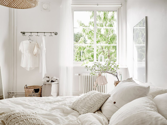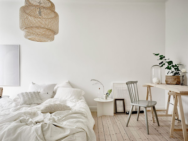 Uwielbiam takie naturalne wnętrza, połączenie bieli i drewnianych dodatków. Sypialnia wygląda naprawdę klimatycznie, na pewno będzie to jedna z moich głównych inspiracji, kiedy zacznę urządzać swoje mieszkanie.