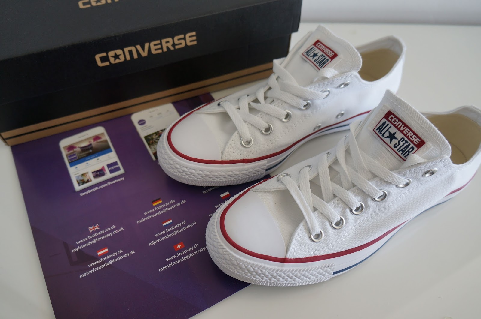W poszukiwaniu pomysłów na odświeżenie swojej garderoby warto pomyśleć nad zakupem nowych butów. Ja swoją szafę powiększyłam o nowe trampki: białe klasyczne Converse All star Canvas Ox Optical White i różowe Lacoste Zian Chunky ze sklepu www.footway.pl. Warto odwiedzić ten sklep: dobre marki, takie jak: Adidas, Nike, Calvin Klein, Geox, Hunter, Timberland, zarówno damskie, męskie, jak i dziecięce, szybka dostawa (2 dni robocze, choć paczka nadawana jest z zagranicy), świetna cena – np. teraz jest promocja i klasyczny model Converse kosztuje tylko 178 zł!