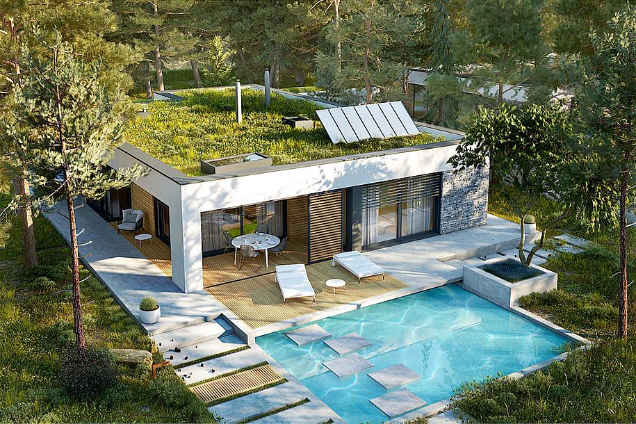 Domy z płaskim dachem robią olbrzymie wrażenie – zwłaszcza z zielonym tarasem na dachu. Dają wiele możliwości do aranżacji wnętrza i ogrodu.