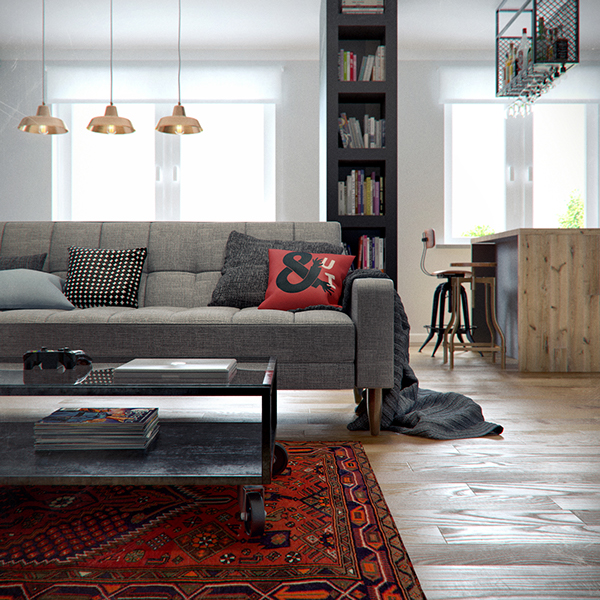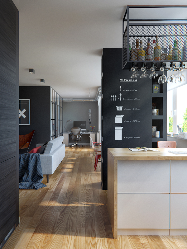 Mieszkanie o powierzchni 69m2 położone u naszych wschodnich sąsiadów, na Białorusi w Mińsku. Dominuje tutaj kolor szary w różnych odcieniach. Duża przestrzeń dzienna, w której jest salon, kuchnia, jadalnia oraz miejsce do pracy biurowej – ma charakter „open space”. Oddzielna jest jedynie sypialnia oraz łazienka.