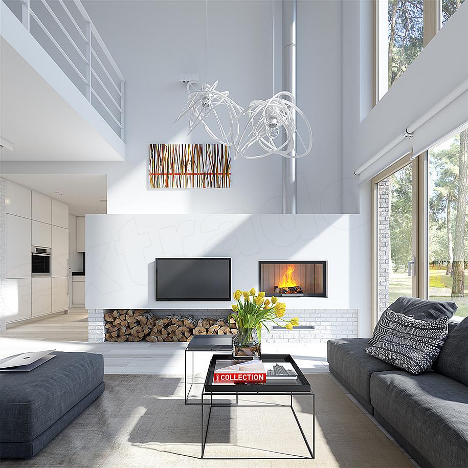 z pokojem dziennym i kominek, który zawsze wprowadza do wnętrza niepowtarzalny
