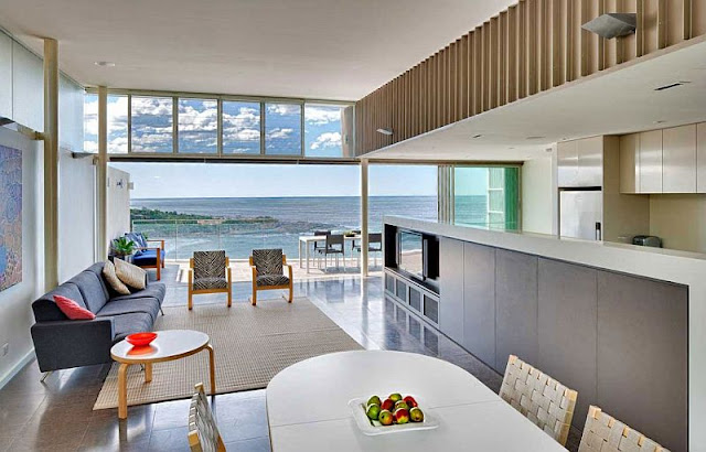 Dom z widokiem na Ocean – marzenie niejednej osoby. Tej budynek znajduje się w Sydney i jest zaaranżowany w nowoczesnym stylu. Duże okna (które można bardzo szeroko otworzyć) szklana barierka sprawiają, że nawet siedząc na sofie można czuć się jak na tarasie.