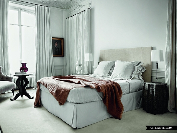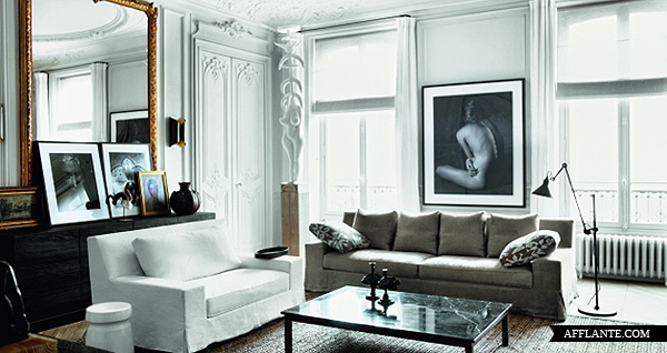 Mieszkanie położone jest w Paryżu. Zamieszkuje w nich para „designerów” – Gilles & Boissier, specjalizująca się w projektowaniu wnętrz luksusowych. Widać, iż mieszkanie jest położone w jednej z paryskim kamienic, ma piękne zdobienia – ornamenty, duże okna i co najmniej 3m wysokości. Wnętrze wykończone jest w klasycznym, ponadczasowym stylu. Myślę, że niedługo coraz więcej osób będzie „wracać” do podobnych aranżacji oraz historycznego budownictwa.