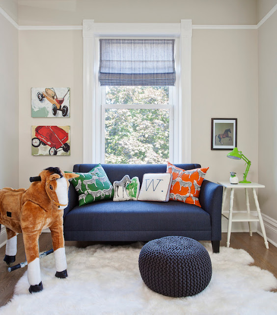 Dywan w żyrafie łaty też jest świetnym elementem wystroju, takim który pobudza wyobraźnię. Już widzę dzieciaki które bawią się udając, że linie pomiędzy łatami to autostrady; albo przeskakują z łaty na łatę… 🙂