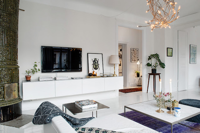 Przestrzeń dzienna w mieszkaniu + domowe biuro – skandynawski design