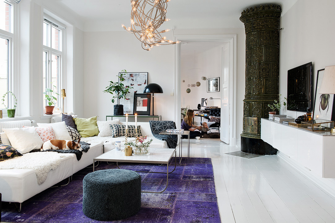 Połączenie takiego żyrandola z piecem kaflowym wygląda świetnie 🙂