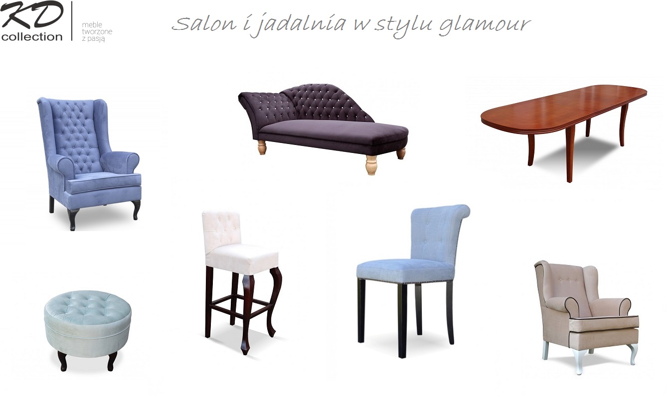 mebli w stylu glamour oferuje marka kdcmeble.com. Aranżowany salon z jadalnią można wzbogacić o takie praktyczne