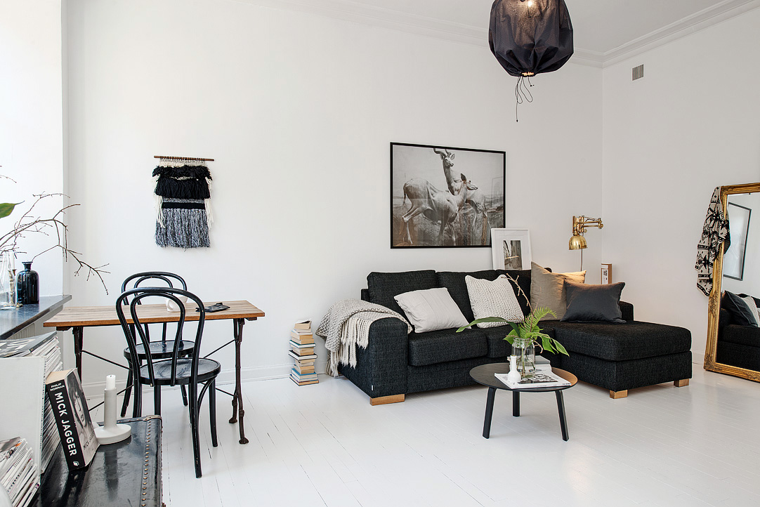 Skandynawska kawalerka z miejscem na sypialnię – blog wnętrza design