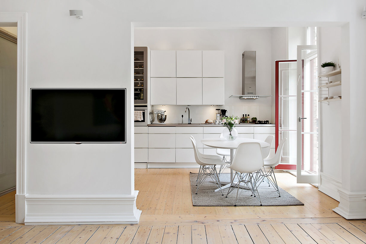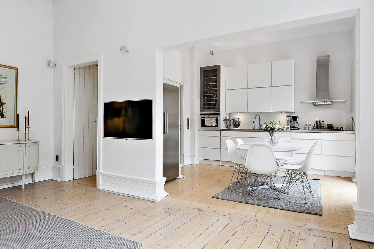 Dwupokojowe mieszkanie o powierzchni 63m2. Położone w Szwecji, urządzone w skandynawskim stylu. Wyróżnia się na tle podobnych aranżacji – głownie dzięki nowoczesnemu klimatowi. Wnętrze składa się z pokoju dziennego połączonego z aneksem kuchennym, sypialni, łazienki oraz korytarza (gdzie umieszczono pojemne przesuwne szafy). Pokój dzienny wraz z kuchnią to przewaga bieli (ściany, szafki kuchenne, krzesła) oraz beżowa podłoga. Wyeksponowany jest także obraz nad sofą, jest to jeden z niewielu kolorowych przedmiotów w pokoju.W sypialni białe ściany, duże łóżko, szare zasłony. Łazienka w kolorystyce biało, szaro, beżowej. Nowoczesna, ale raczej w minimalistycznym stylu. Całość dopełnia przyjemny balon, na który wchodzi się z aneksu kuchennego.