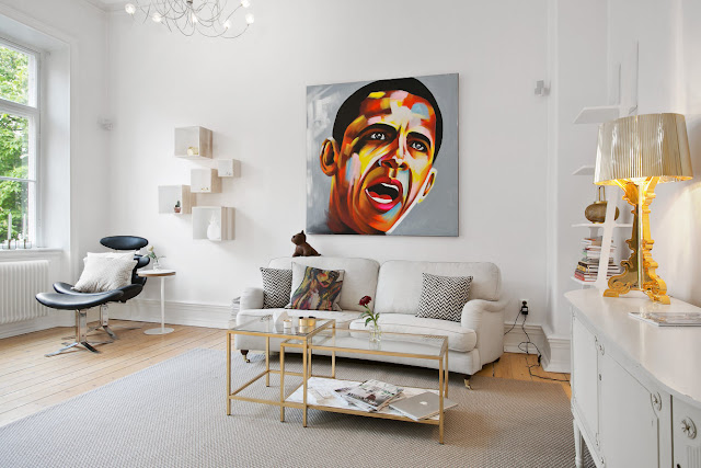 Mimo, że nie jestem wielką fanką takich zimnych, nowoczesnych wnętrz to akurat to mieszkanie wygląda całkiem przyjemnie i nie tak bezosobowo jak niektóre 😉 Ale fakt, ten Obama psuje nieco efekt. Może coś innego byłoby trochę odpowiedniejsze.