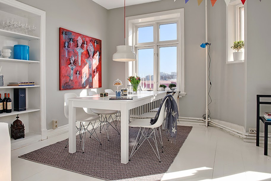 Mieszkanie z klimatem, bardzo fajnie urządzone. Kolor ścian szalenie mi się podoba, a i kapitalnych dodatków i mebli jest tutaj cała masa.