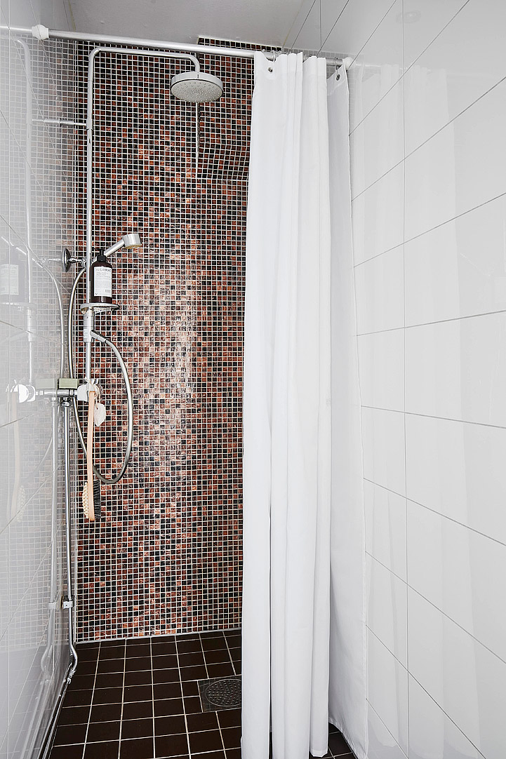 Bardzo podoba mi się rozwiązanie z szafkami nocnymi. A raczej półkami nocnymi. Świetne, coś idealnego dla mnie. Na pewno moja lampka by dawała więcej światła, gdyby była właśnie na tej wysokości. Tylko nie bardzo podoba mi się prysznic. Zauważyłam, że rzadko kiedy te prysznice w stylu skandynawskim mi pasują.