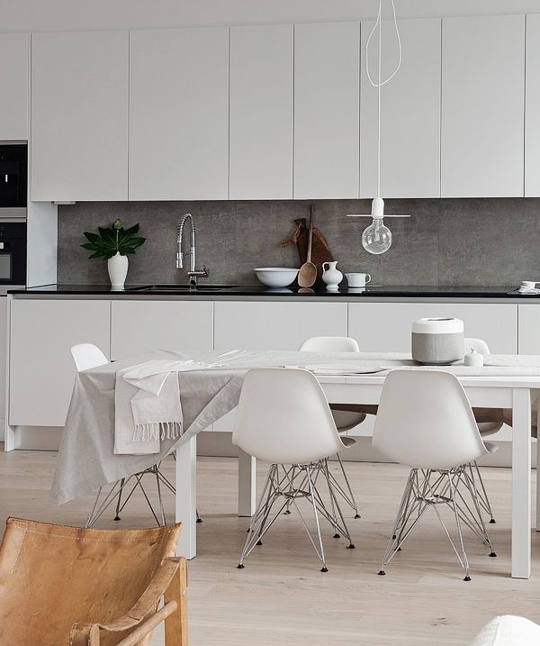 Jakie najczęściej są stosowane są dodatki w skandynawskich wnętrzach? Lampy to modne takie jak na trzech nogach (marki Lightwood, która były wygraną w naszym konkursie), stoliki także na cienkich drewnianych lub metalowych nogach oraz krzesła plastikowane na podobnym stelażu (typu emaes chair).