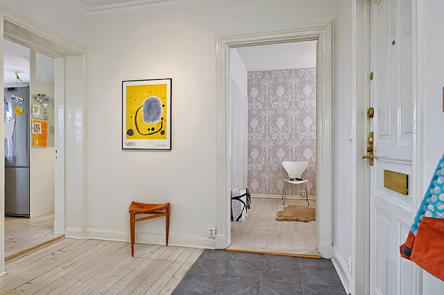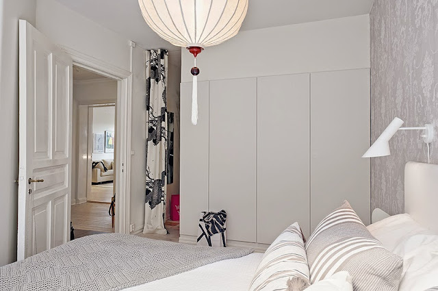 Dziś przedstawiam aranżację kolejnego skandynawskiego wnętrza. Chciałabym się przy okazji tego postu podzielić się moimi przemyśleniami dotyczących takich aranżacji. Czy zauważliście, że ten styl podoba się dużej grupie osób? Pewnie dlatego, że jest jasny i bardzo spójny. Skandynawowie nie zasłaniają za bardzo okien, aby do wnętrz wpadało jak najwięcej słońca, którego w ich szerokości geograficznej nie ma zbyt wiele:) Co ich wyróżnia? Także umiejętne łączenie przedmiotów. Często podłogi, drzwi i inne drewniane elementy odnawiają, nie wymieniają na nowe. Za to we wnętrzu jest jakaś nowoczesna grafika, czy designerski mebel (tu fotel Egg). Nie „spinają się” w aranżacji, nie używają tylko nowoczesnych mebli, ale najważniejsze jest umiejętne łączenie przedmiotów i zachowanie neutralnej bazy, by styl był jednolity. Wydaje mi się, że są świetni w urządzaniu mieszkań!