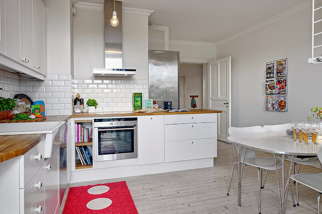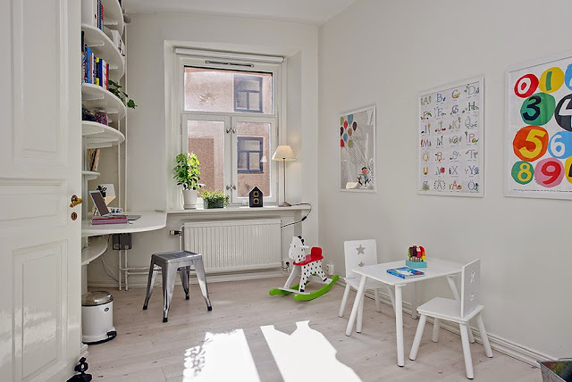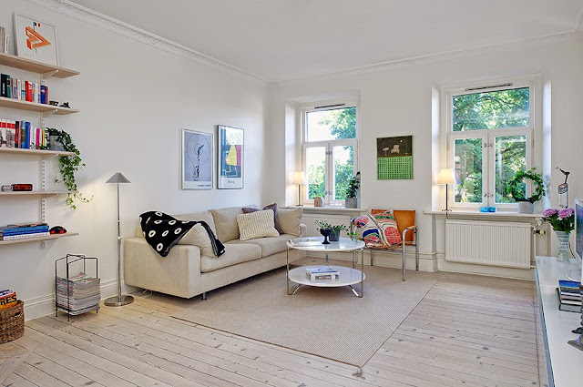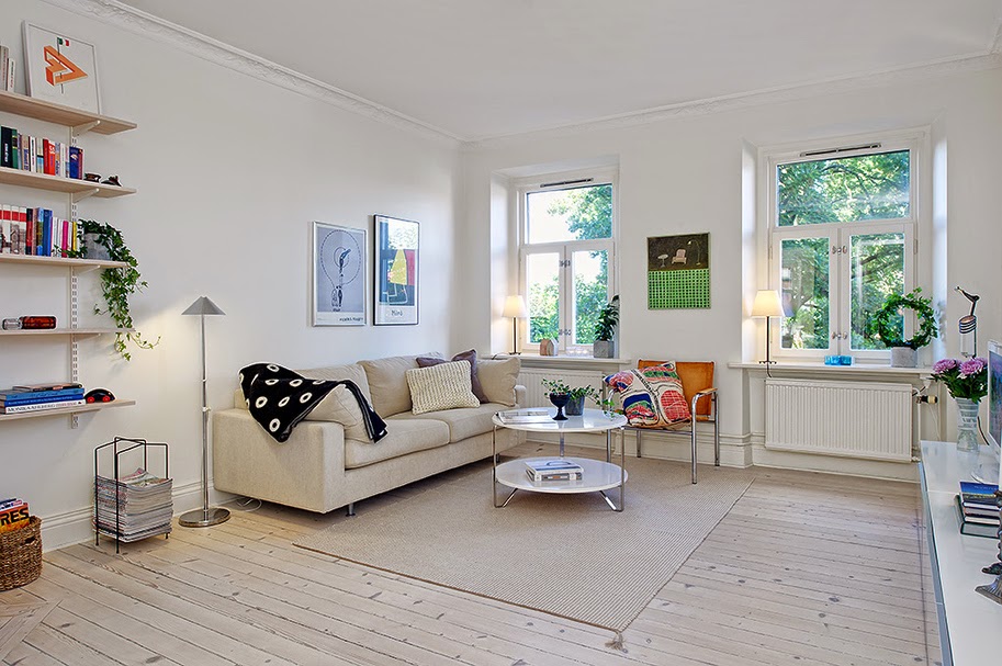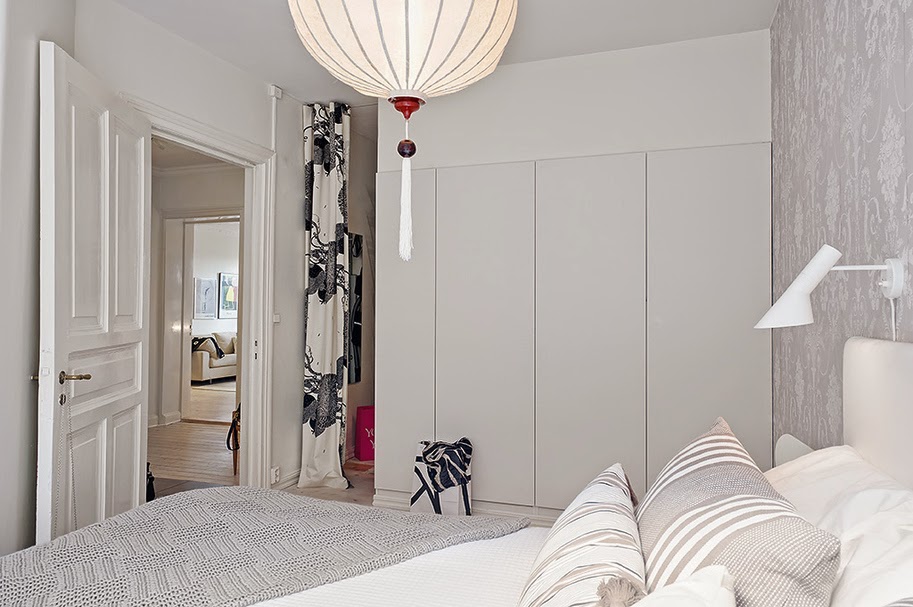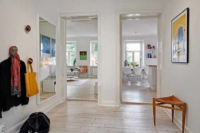 Dziś przedstawiam aranżację kolejnego skandynawskiego wnętrza. Chciałabym się przy okazji tego postu podzielić się moimi przemyśleniami dotyczących takich aranżacji. Czy zauważliście, że ten styl podoba się dużej grupie osób? Pewnie dlatego, że jest jasny i bardzo spójny. Skandynawowie nie zasłaniają za bardzo okien, aby do wnętrz wpadało jak najwięcej słońca, którego w ich szerokości geograficznej nie ma zbyt wiele:) Co ich wyróżnia? Także umiejętne łączenie przedmiotów. Często podłogi, drzwi i inne drewniane elementy odnawiają, nie wymieniają na nowe. Za to we wnętrzu jest jakaś nowoczesna grafika, czy designerski mebel (tu fotel Egg). Nie „spinają się” w aranżacji, nie używają tylko nowoczesnych mebli, ale najważniejsze jest umiejętne łączenie przedmiotów i zachowanie neutralnej bazy, by styl był jednolity. Wydaje mi się, że są świetni w urządzaniu mieszkań!
