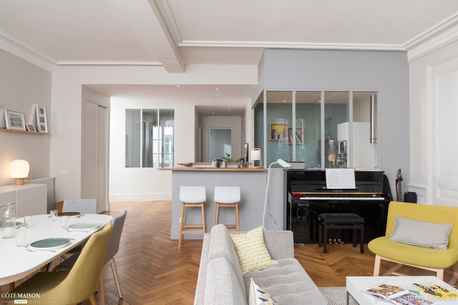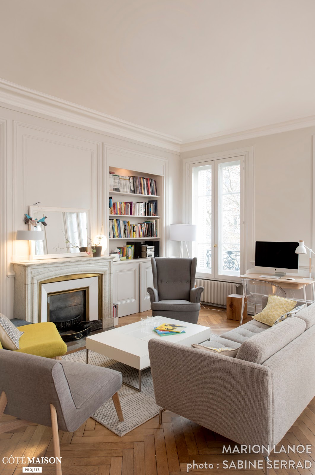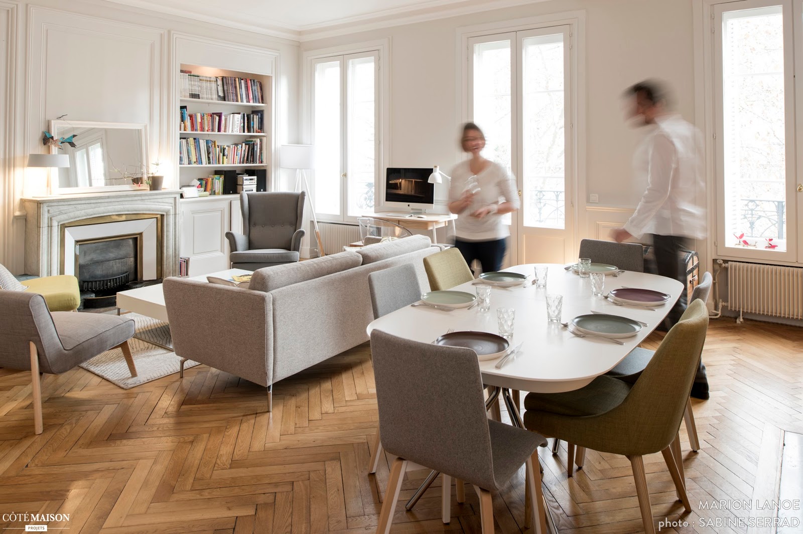 Stylowe mieszkanie położone we francuskim mieście Lyon. Wnętrze mieszkanie ma 100m2. Składa się z pokoju dziennego połączonego z aneksem kuchennymi wraz jadalnią, pokojów dla dzieci, sypialni rodziców i łazienki. Cztery przestronne pokoje łączy jedno styl! Wnętrze jest klasyczne, zdobione delikatną sztukaterią. Dominują tutaj jasne kolory: biel, szarość i beż. Podłoga z parkietem ułożonym w charakterystyczną jodełkę.