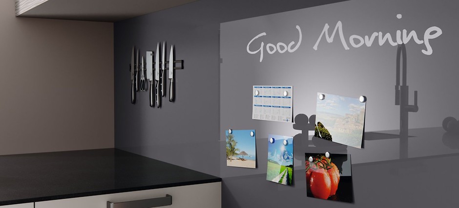 Laminaty nadają się do nowoczesnego wnętrza, mają ciekawy design, a dodatkowo można na nich pisać (np. listę zakupów) lub potraktować jako tablicę magnetyczną (i zamieścić plan lekcji czy zdjęcia z wakacji).