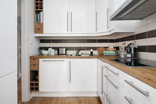 To mieszkanie zostało urządzone w ten sposób by wnętrze było przytulne i przestronne. Pomimo stosunkowo dużego metrażu 75m2, pomieszczenia nie są zamknięte. Nie zamontowano drzwi wewnętrznych w salonie i kuchni, ani nie ograniczać przestrzeni.