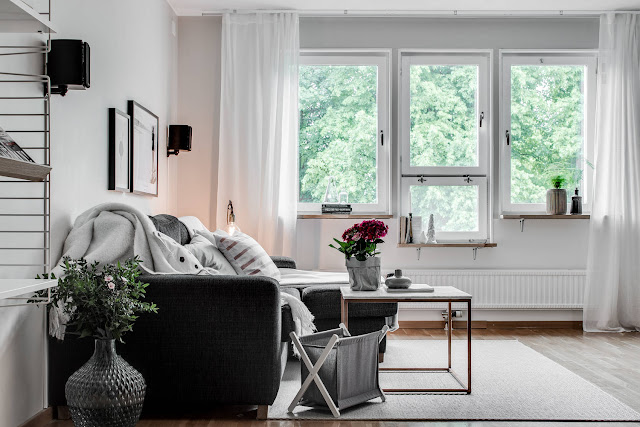 Skandynawskie aranżacje podobają się sporej grupie osób, ale krytycy zarzucają, że czasem jest aż za biało. To mieszkanie ma wkilka kolorowych akcentów ….