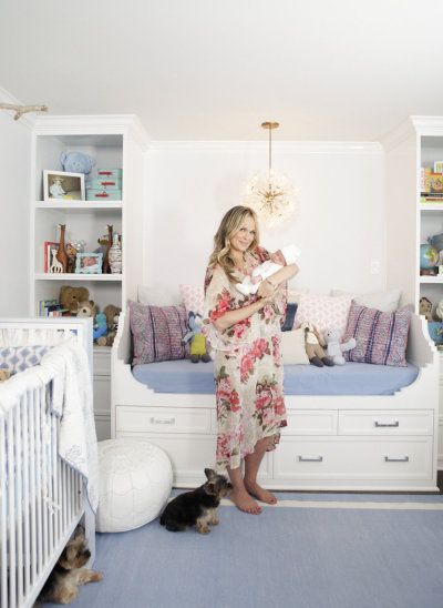 Pokój, który znalazłam na stronie http://www.stylemepretty.com/living/2013/05/13/molly-sims-nursery-from-gia-canali/ jest zdecydowanie pastelowy. Ściany są jasno niebieskie i meble białe, ale dodatki nadają wnętrzu klimatu i pastelowej barwy.