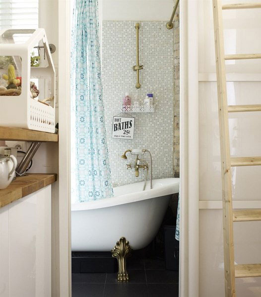 Paryskie mieszkanie blogerki Eleonory. Kawalerka o powierzchni 35m2. Mieszkanie jest długie i wąskie, ma charakter wnętrza otwartego. Właścicielka tutaj śni, odpoczywa, pracuje i spożywa posiłki. Jest tu dużo przedmiotów, ale połączonych w bardzo ciekawy sposób. Dużo lamp: wiszące, stojące oraz modne kule cotton balls. Pomimo niewielkiej przestrzeni znalazło się także miejsce na oryginalny regał z butami. Nie ma wątpliwości, że to mieszkanie należy do kobiety!