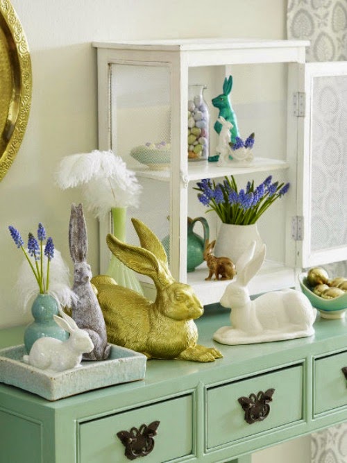 Wielkanocne dekoracje są zdecydowanie radosne w żywych nasyconych barwach. Wszytko budzi się do życia, jest wiosennie, kolorowo. Często w dekoracji używa się motywu jajek, zajączka, żonkile, rzeżucha … Przedstawiam kilka inspiracji i przy okazji życzę Wszystkim moim czytelnikom Wesołych Świąt Wielkanocnych 2015 🙂