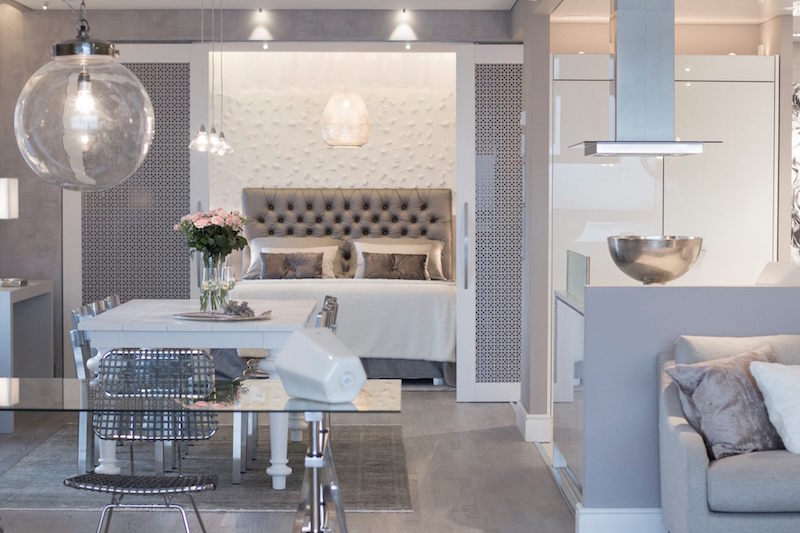 Wnętrze w stylu glamour (beż, srebro i szarość)